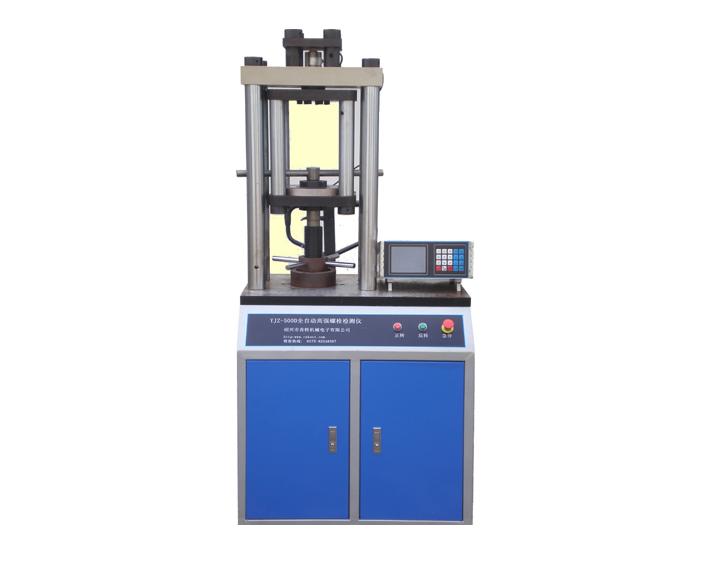 一、功能特点:沧州昊宇仪器设备有限公司YJZ-500D型全自动高强螺栓检测仪可对大六角头高强螺栓连接副(M12~M30)和扭剪型高强螺栓连接副(M16~M30)的轴力、扭矩(或扭矩系数)进行检测、显示并打印输出。实现高强螺栓的自动拧紧、放松、复位,自动化程度高,操作方便快捷。试验时,控制仪根据输入螺栓型号、规格和等级自动控制试验过程,当轴力达到设定值后,检测仪自动停止并记录检测数据,同时检测仪根据轴力和扭矩自动计算出扭矩系数并自动显示。销售热线:0317-4568809 13832762900 18731760366 QQ:179986750液晶仪表可显示轴力、扭矩、扭矩系数等参数,以及自动计算输出标准偏差、变异系数。具有数据查询功能,可存储和读取420组试验数据,控制仪内置打印机可直接打印输出。设置RS232接口,可将数据传送到计算机,满足数据进一步处理,并打印试验报告。