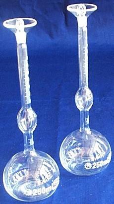 李氏比重瓶是一个细长颈平底瓶,容积250ml左右,瓶颈上口系喇叭形宽口,具磨砂玻璃塞,在瓶颈的中下部有一长形球,瓶颈刻度容量为24ml,刻度分为三段,从瓶颈下部开始,(为瓶颈中部球容积)。它是根据**标准GB 208一63水泥比重法规定的尺寸数据制造。